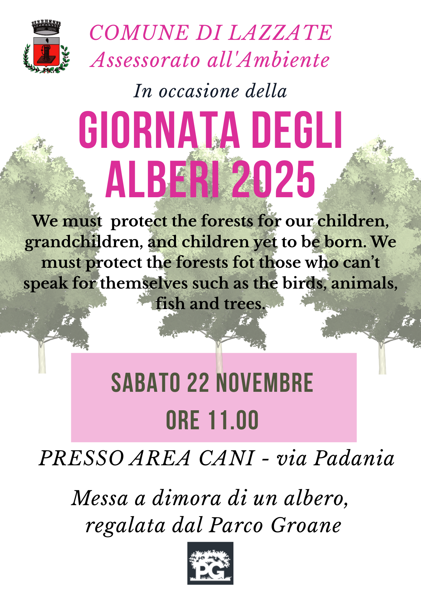 In occasione della Giornata degli Alberi, sabato 22 Novembre l’Assessorato all’Ambiente metterà a dimora un albero donato dal Parco Groane. L’iniziativa è in programma all’Area Cani di Via Padania, alle ore 11:00.