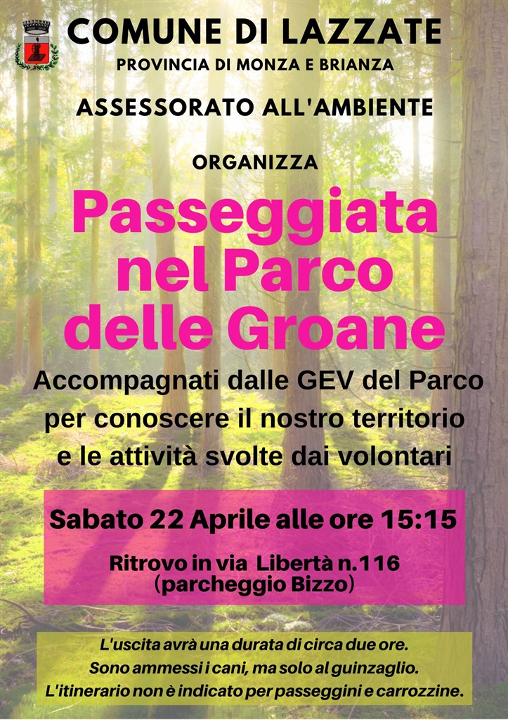 In questa sezione puoi trovare gli eventi organizzati nel corso dell'anno dall'Assessorato all'Ambiente ed Ecologia del Comune di Lazzate.
